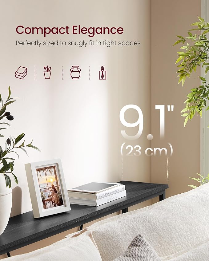 - 【SMART SPACE UTILIZATION】This hallway table, with its slim 9.1" depth, takes up minimal space but offers maximum storage. It can accommodate a variety of items, turning unused spaces into efficient storage areas