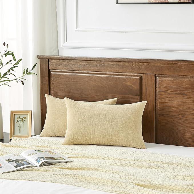 GAWAMAY Lumbar Decorative Throw Pillow Covers 12"x20" Inch Set of 2, Super Soft Chenille Rectangle Pillowcase for Living Room Bedroom Sofa Couch Cushion Support Pillow Cover 30x50cm Khaki (No Insert)