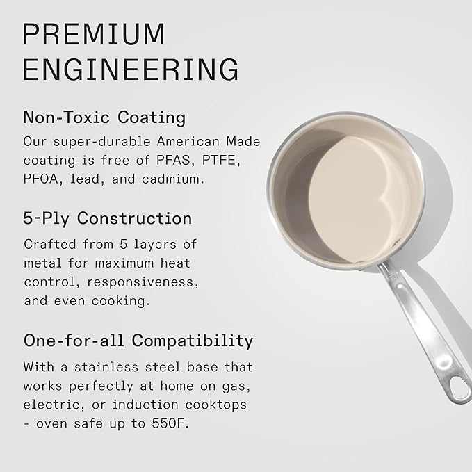 Made In Cookware - 2 QT Ceramic Non Stick Saucepan with Lid - 5-Ply Stainless Clad with Stay-Cool Handle - Professional Cookware - Crafted in Italy - Induction Compatible