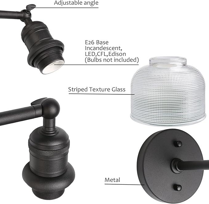 - 【Elegant Fireplace Lighting】: Striped Shade Size: 5.71'' x 4.33"; the whole light of Size: 10.63'' x 10.75''; Wall Plate: 4.72''. Please make sure the size about this fireplace fixture. High-quality materials, rusting, durable, anti-oxidation, built to withstand humidity, making it also suitable for installation above bathroom mirrors