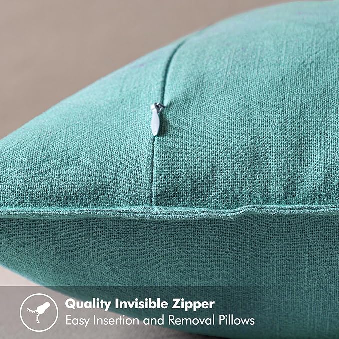MIULEE Decorative Linen Pillow Covers 18x18 Inch Turquoise Boho Farmhouse Neutral Couch Throw Pillows for Bed Pack of 2 Accent Coastal Modern Pillowcase Summer Sofa Livingroom Home Decor