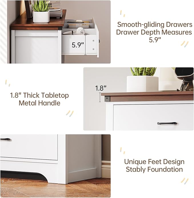- 【Stable & Sturdy Construction】Crafted from thick, high-density engineered wood, this chest of drawers for bedroom combines durability with a natural texture and resistance to warping. A sturdy 4.13" base ensures excellent stability and supports a high weight capacity. The 1.77" thick crown molding top can support up to 150 lbs, offering additional space to display cherished photos, artworks, and decorations, transforming your room into a captivating gallery.