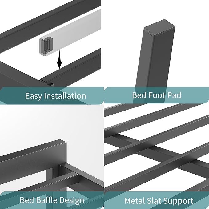 - Sturdy Support Structure: Heavy duty metal bed frame structure provides sturdy support that evenly distributes weight and holds up to 1,000 lbs. It also provides a more stable and comfortable sleeping experience