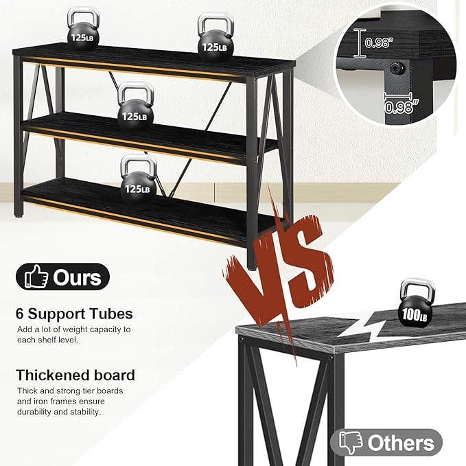 HOMISSUE Entryway Console Table, Rustic Console Tables with Wide Storage, Industrial Foyer for Entry with 3-Tier Open Shelves, Entryway Table for Living Room, Hallway, Black, 47 Inch