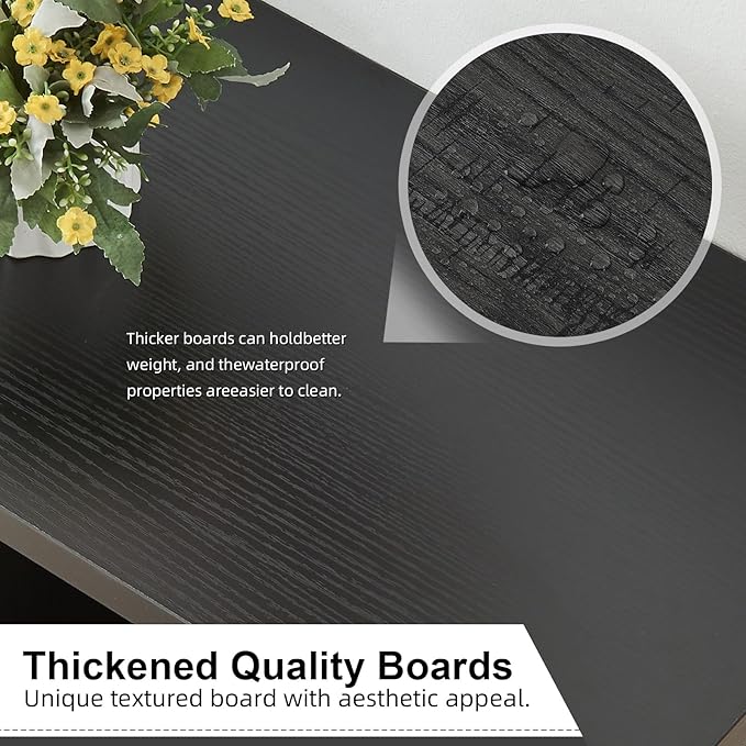 - [High-quality Materials] Thickened MDF and sturdy metal frame make this sofa table durable. And well-designed structure helps the hallway table for entryway more stable and does not shake. Waterproof board is easy to clean, requires no thought and time maintenance, and can be used for a long time without deformation and damage. Overall Dimensions: 30" high x 47.2" wide x 12.7" deep.