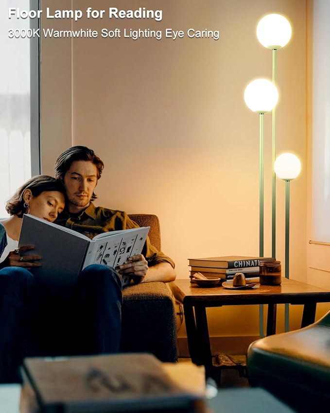 - Unique & Exquisite Modern Design ✨ This 63-inch green floor lamp boasts a mid-century inspired silhouette with three spherical lights artfully arranged on a U-shaped triple metal frame. The elegant minimalist structure blends seamlessly with contemporary, vintage, or industrial decor, adding a touch of sophistication to living rooms, bedrooms, or offices.