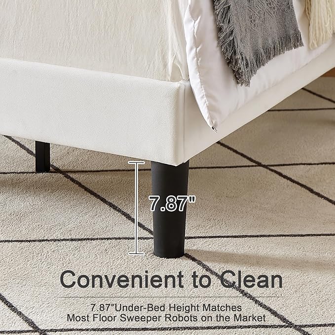 - [Adjustable Headboard] This twin upholstered bed frame with an adjustable headboard offers exceptional versatility. With four adjustable heights of 41/43/45/47 inches, it accommodates mattresses ranging from 6 to 12 inches.