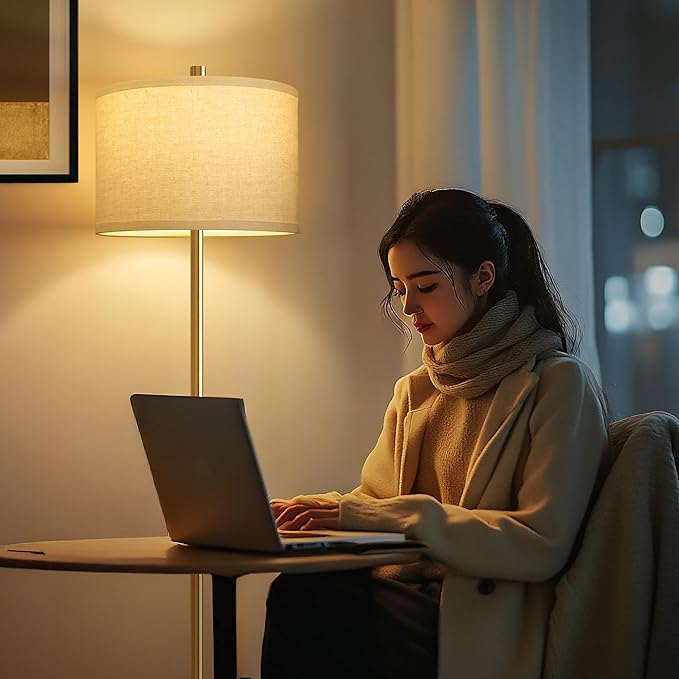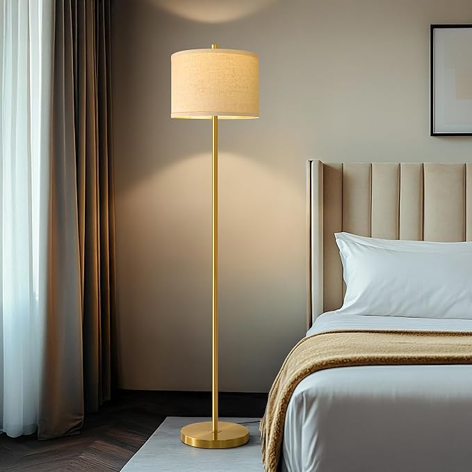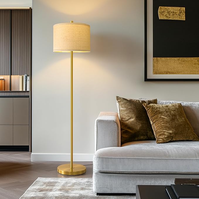 - Wide Applications Morden Floor Lamp: This floor lamp features a gold lamp body and natural linen lampshade, equipped with a rotary switch to turn on and off. Helps to brightened up the room and suitable for use near sofas, living room corners, side cabinets, bedside areas, etc