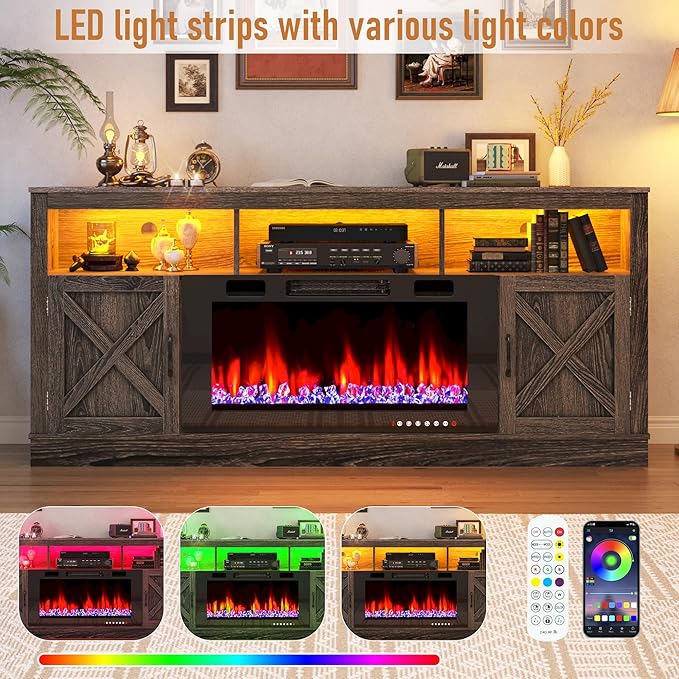 - Plenty of Storage: The fireplace entertainment center includes 2 barn door cabinets and 3 compartments, providing ample storage space to accommodate electronic devices and accessories, perfect for displaying room decorations and photos