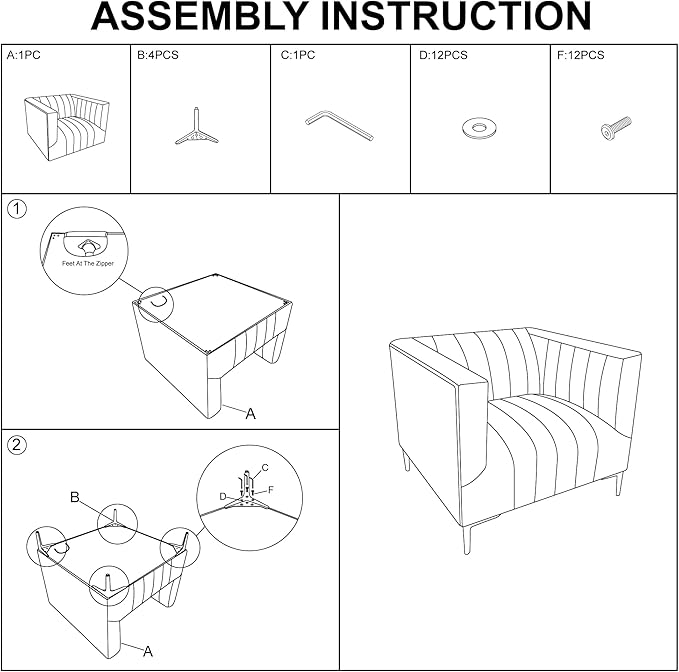 - Simple Assembly: Easily assemble this single chair with just four metal legs. All accessories and instructions are provided, allowing you to experience the stylish and comfortable design of this modern accent chair in no time.