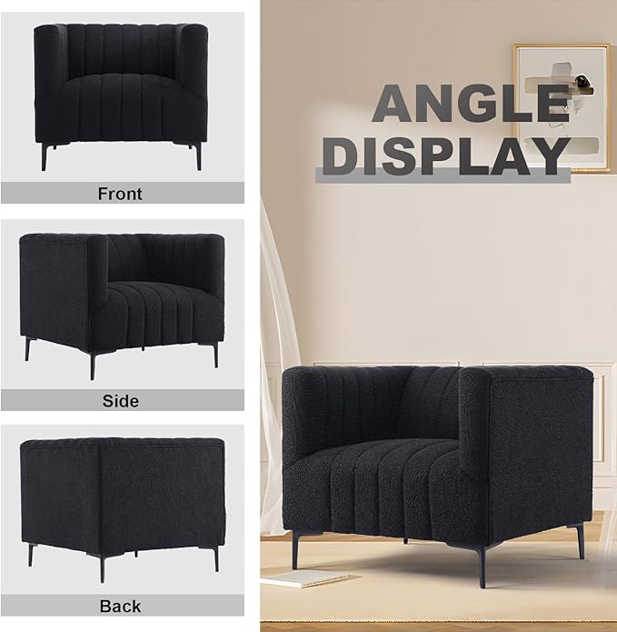 Get Set Style Modern Accent Single Sofa Chair with Arms,Tufted Boucle Upholstered Comfy Reading Arm Chair,Thick Seat Cushion Chair for Living Room Bedroom Study Studio Lounge, Black