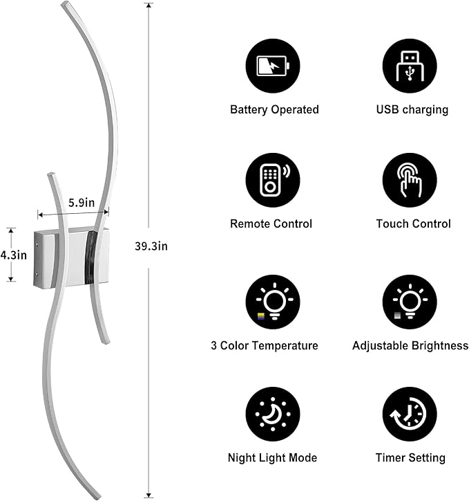 - Wide Application: Modern style and simple design of the rechargeable wall sconces create a comfortable and warm atmosphere, ideal for living room, bedroom, corridors, entryway, hallway, dining room. This is the ideal choice for your home lighting and decoration