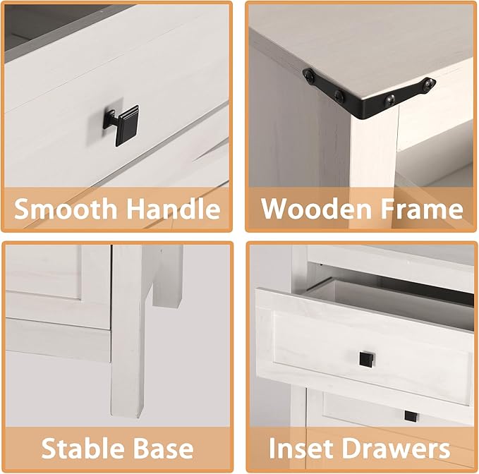 - 【Solid and Premium】Crafted with durable engineered wood for long term use, this white dresser with a strong structure and great weight capacity to hold your bedside essentials. We also provide thick legs and anti-tipping device to prevent hazards.