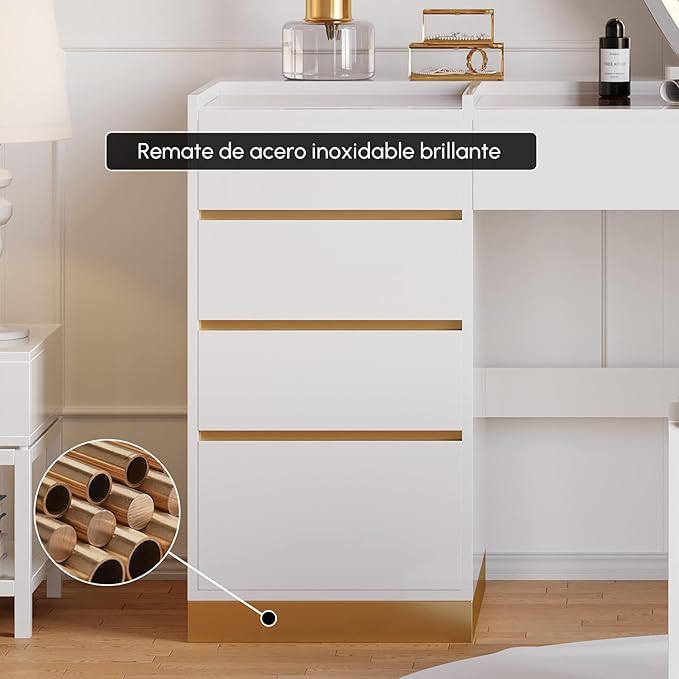 - [Adjustable 3-Color LED Lighted Mirror] - Homary vanity set with lighted mirror features a built-in LED mirror offering three adjustable lighting modes: warm white, natural, and cool white. The soft light is gentle on your eyes, perfect for flawless makeup application, day or night