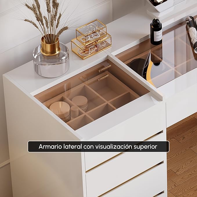 - [Spacious Storage for Jewelry and Makeup] - Keep your beauty essentials organized with homary vanity table with storage. It features multiple drawers and a dedicated jewelry organizer, perfect for storing makeup, brushes, and accessories. Homary dressing table with storage helps you stay organized while keeping your space tidy