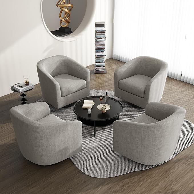 UIXE 360° Swivel Barrel Accent Chair Armchair, Round Club Arm Chair in Fabric for Lving Room, Modern Upholstered Small Bedroom Single Sofa Seat - Khaki, Set of 4