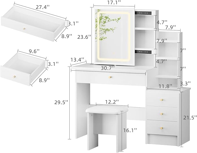 - Durable & Easy Assembly: Vanity desk made made of MDF and offers exceptional stability and durability. The smooth and flat surface is easy to clean. The vanity desk with drawers comes with all necessary installation tools and simple instructions, making assembly quick and straightforward.
