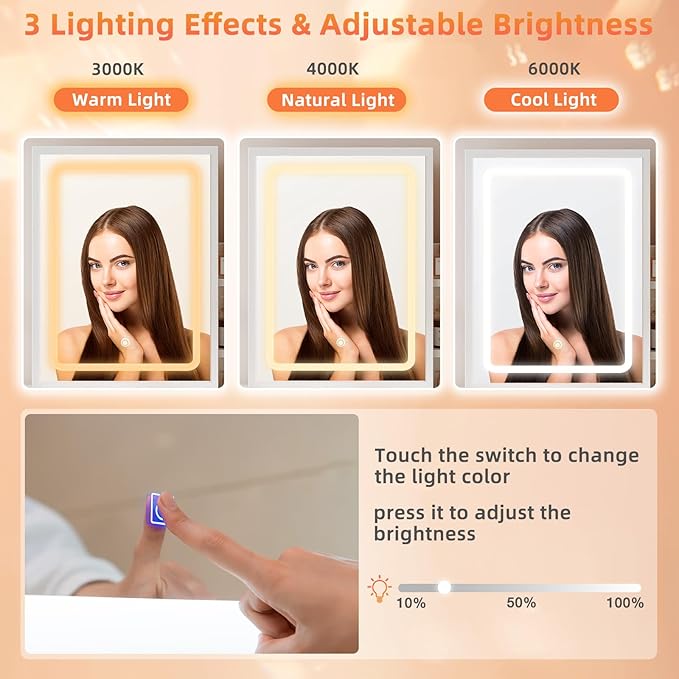 - 3 Color Modes & Adjustable Brightness: The vanity desk with lights offers 3 color modes (warm, cool, and natural) with adjustable brightness, the vanity mirror built-in lights let you create the perfect ambiance for makeup application or skincare routines. Easily change settings with the touch of a button.