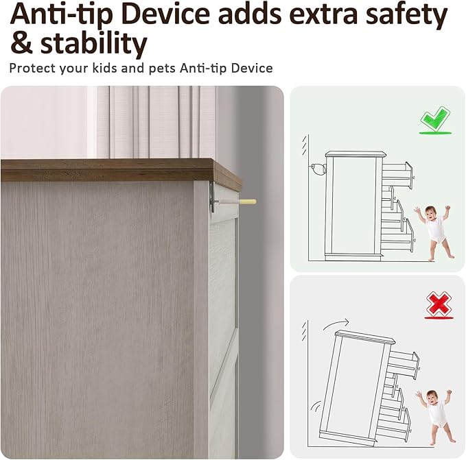 - 【Safety First】 Anti-tip accessory included preventing injury from unexpected tip of the 6 drawers dresser. Maximize the safety of you, your family and pets.
