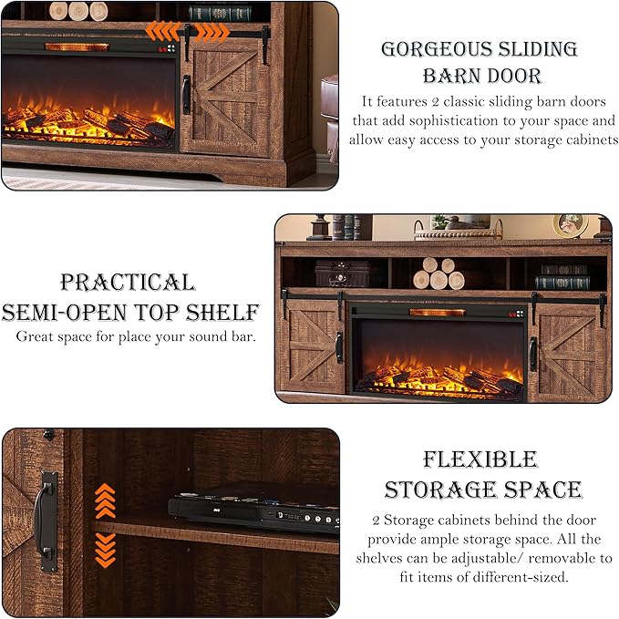 - Special Feature : 36 Inch Fireplace, Highboy TV Stand, Sliding Barn Door