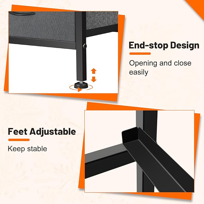 - Durable Material - This dresser storage organizer is made of non-woven synthetic fiber, harmless and wear-resistant. Strong steel frame and water-resistant wood top offer stable support. Easy-pull drawers with plastic handles for smooth opening and closing.