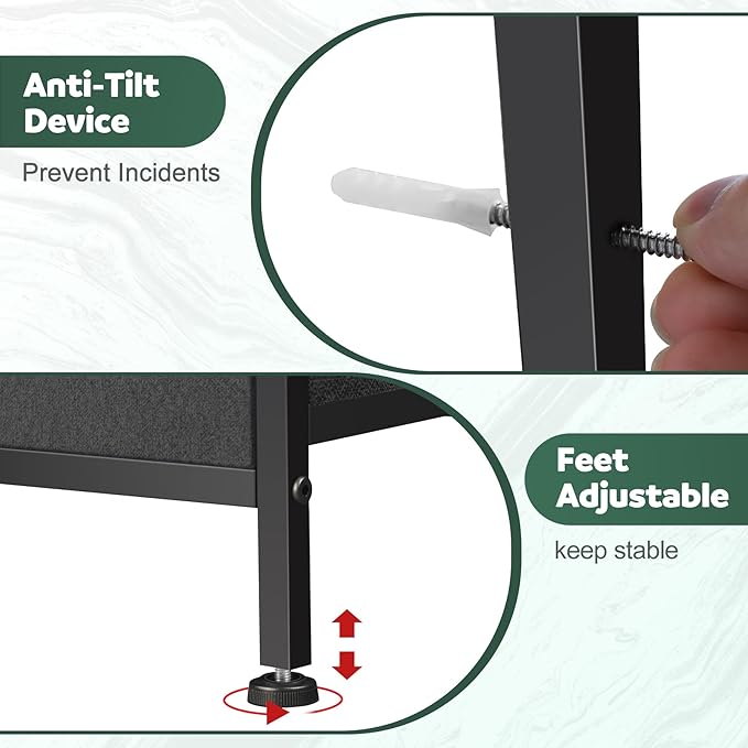 - Large Capacity - Fabric drawer dimensions: L (18.4" L x 11"W x 8.6" H);M(11.7"L x 11"W x 8.6" H) This dresser for bedroom comes with detailed instructions and all hardware needed, it is easy to assemble.