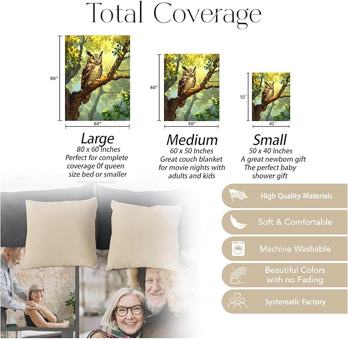 Cartoon Owl Blanket, Soft Cozy Warm Throw Blanket Gifts for Adults Kids Women, Lightweight Comfy Fuzzy Flannel Blankets for Couch, Travel, Car, Home Decor 80×60 Inch
