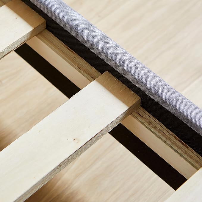 - 【Built Strong】 Woven fabric upholstery with solidwood framework. The 12 piece wooden slat system with wooden center rail and support rail provides reliable and long lasting support.