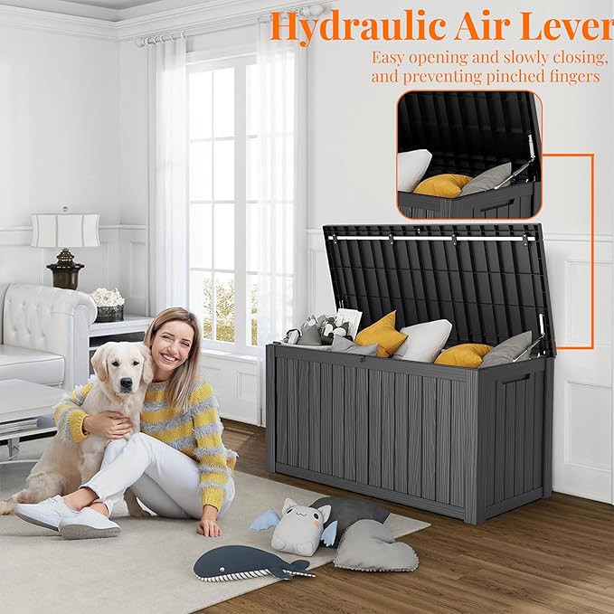 - ADAPTABLE TO VARIOUS SCENES: Whether used as an indoor laundry storage chest or an outdoor deck box container for items like outdoor cushions, garden tools, pool accessories, and sports equipment, this patio storage box provides abundant space. It's also versatile as a side table, yard seat, storage bench, or footrest