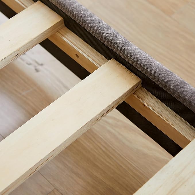 - 【Built Strong】 Woven fabric upholstery with solidwood framework. The 12 piece wooden slat system with wooden center rail and support rail provides reliable and long lasting support.
