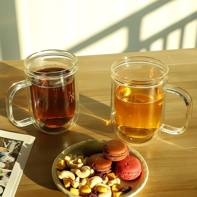 - Double-Wall Insulation for Temperature Control - Enjoy hot coffee or iced beverages at their ideal temperature with double walled glass coffee cups. The air gap design prevents condensation and keeps drinks at a comfortable warmth or chill