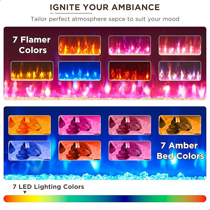- CREATE YOUR PERFECT ATMOSPHERE: The centerpiece of this fireplace entertainment center is a stunning 36" crystal fireplace, featuring 7 adjustable flames and customizable ember bed colors, complemented by LED lighting in the side cabinets. Mix and match to craft the ideal atmosphere for movie night. Brilliant crystals reflect each lifelike flame, adding elegance to your space. Effortlessly control it all with the included remote, making it easy to tailor your environment to suit your mood
