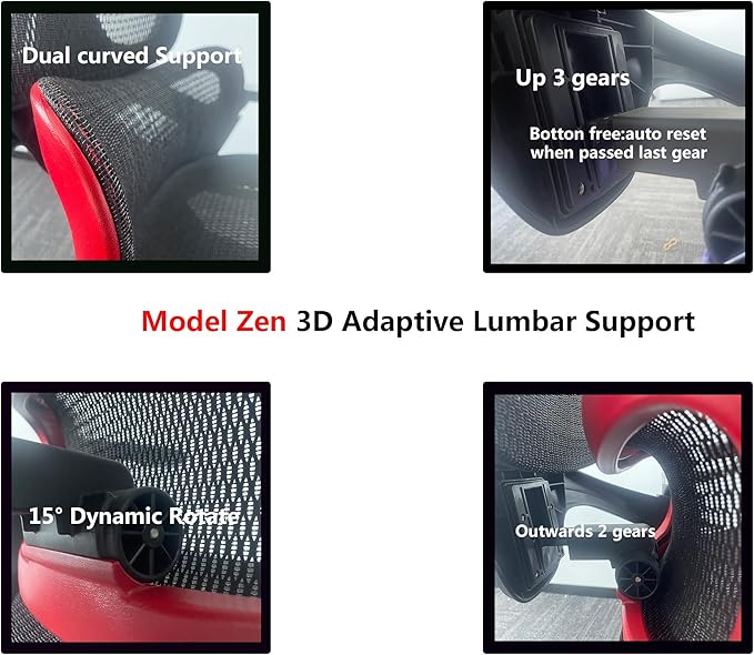 - ADJUSTABLE LUMBAR SUPPORT and 5D ARMRESTS - 3 gears up + 2 gears out adjustable lumbar support can relieve your lower back pain, coordinates with the 5D armrests, help your arms align with the desk effortlessly when using a computer.