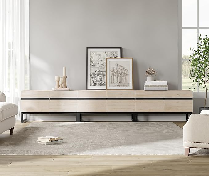 WAMPAT Modern TV Stand for TVs up to 110 inch, 3 in 1 Entertainment Center TV Console with Storage Cabinets and Metal Base,Media Console for Living Room,Light Oak