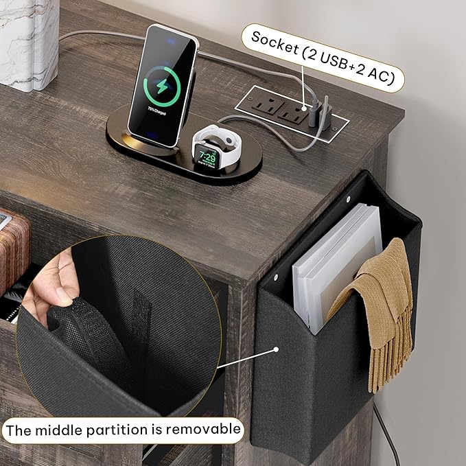 - Convenient Built-in Power: Not your average dresser - enjoy the convenience of 2 USB ports and 2 AC outlets built right into the widened tabletop. Keep your devices charged and ready, whether you're winding down or gearing up for the day