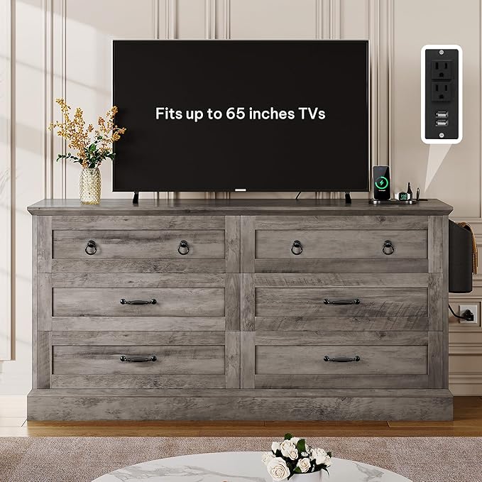- Limitless Versatility: Featuring 6 spacious drawers with inward detailing and a handy side organizer, this dresser is a true multitasker. Use it as a stylish hallway cabinet, a functional TV stand in the living room