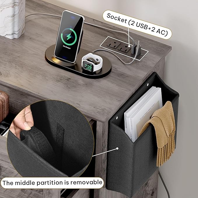 - Convenient Built-in Power: Not your average dresser - enjoy the convenience of 2 USB ports and 2 AC outlets built right into the widened tabletop. Keep your devices charged and ready, whether you're winding down or gearing up for the day