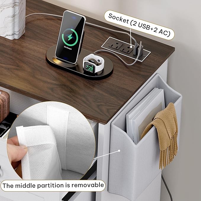 - Convenient Built-in Power: Not your average dresser - enjoy the convenience of 2 USB ports and 2 AC outlets built right into the widened tabletop. Keep your devices charged and ready, whether you're winding down or gearing up for the day