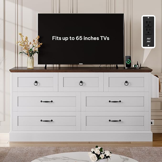 - Limitless Versatility: Featuring 7 spacious drawers with inward detailing and a handy side organizer, this dresser is a true multitasker. Use it as a stylish hallway cabinet, a functional TV stand in the living room, or a chic storage dresser
