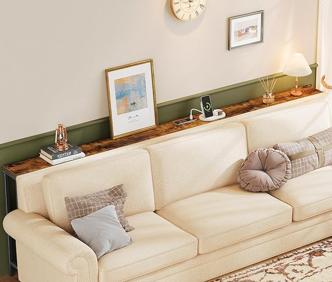 - [Welcome Power Outlets]: Invite this narrow console table to inspire your life! 2 outlets, 1 USB Port and 1 Type-C port are totally enough for your charging needs. Lamps, phones, iPad, fans, even decorative light strings are all covered