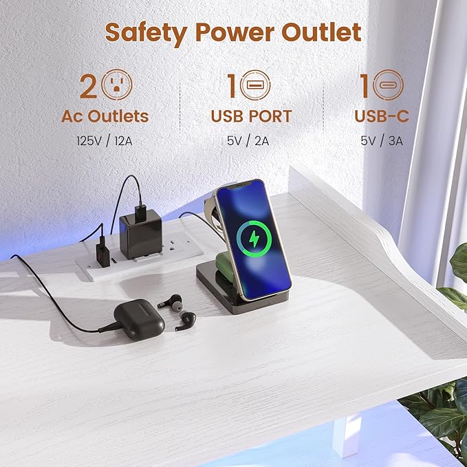 - LED Lights & Power Outlets: The entertainment center with coloful RGB LED lights strips, light your room and make romantic atmosphere. APP or key controlled, easy to change over 60000 colors and mic, music, different timing dynamic modes. Also bulit-in handy charging station with 2 AC outlets and 2 USB ports, provides ultimate convenience for your appliances and mobile devices.