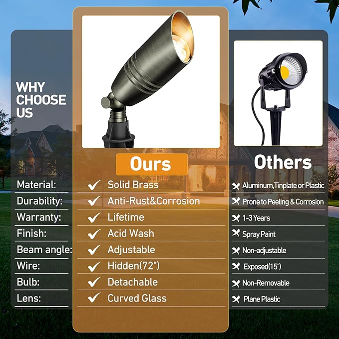 - ๐ ๐ฌ๐ป๐ณ-๐๐๐๐๐๐ ๐บ๐จ๐ญ๐ฌ๐ป๐ & ๐ช๐ถ๐ด๐ด๐ฌ๐น๐ช๐ฐ๐จ๐ณ ๐ซ๐ผ๐น๐จ๐ฉ๐ฐ๐ณ๐ฐ๐ป๐: โETL/cETL certifiedโ 12V low voltage landscape lightingโ (safe for kids/pets), compatible with most transformers. โCommercial-grade brassโ housing ensures reliable performance in โresidential, โhospitality, and โcommercial landscape lightingโ projects