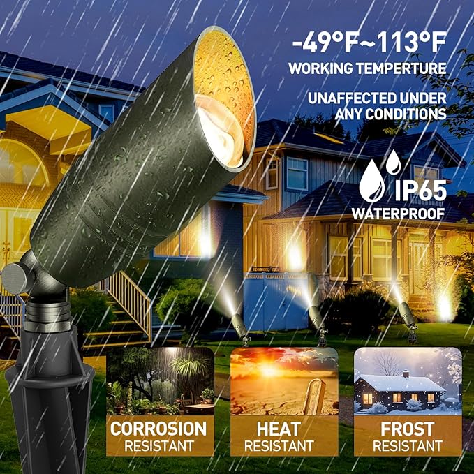 - ๐ง๏ธ ๐ฐ๐ท65 ๐พ๐จ๐ป๐ฌ๐น๐ท๐น๐ถ๐ถ๐ญ & ๐จ๐ต๐ป๐ฐ-๐ญ๐ถ๐ฎ ๐ซ๐ฌ๐บ๐ฐ๐ฎ๐ต: โRated IP65 weatherproofโ with โheat-resistant curved glass lens, sealed grooves, and โbrass housingโ to withstand rain, snow, frost, and sleet. The brass landscape spotlight prevents condensation buildupโ for clear, fog-free illumination year-round