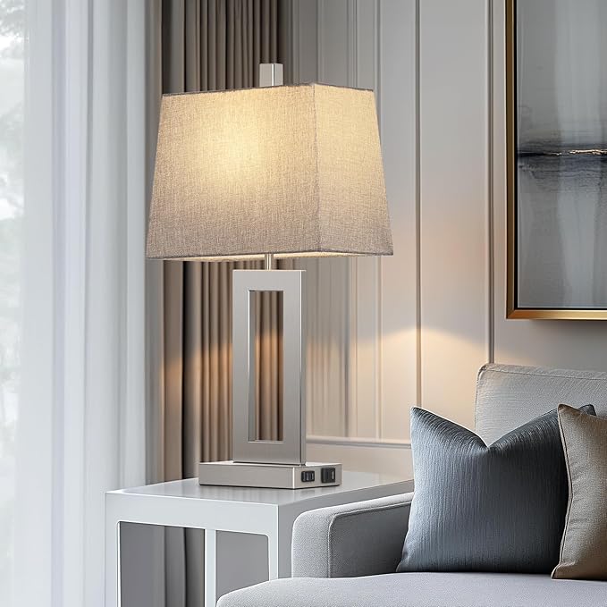 - Modern Design - Classic silver decorative pole design with trapezoidal gray fabric lampshades gives the bedroom lamps a gorgeous look. Perfect for bedrooms, living rooms, end tables, offices, hotels, and guest rooms as a daily decor.