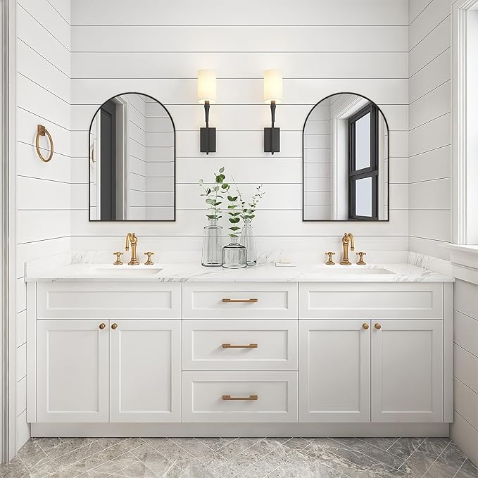 - High-Definition mirror: The black bathroom vanity mirror adopts high-definition imaging technology, which is as clear as crystal, ensuring that the imaging at all angles and distances will not be deformed and blurred, showing its true beauty. And the arched bathroom mirror uses 4MM Tempered Glass, can effectively prevent damage during transportation