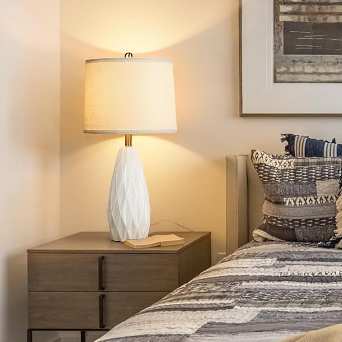 25'' Table Lamp White Table Lamps Modern Ceramic Lamps for Night Stand - Dimmable Bedside Lamps for Nightstand, Bedroom Lamp for Living Room Desk End Table Office Guest Room