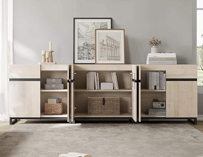- Modern Design: This modern TV stand drawers feature concealed door handles for a neater appearance. Adorned with a light oak grain design, it seamlessly complements various decor styles, from modern simplicity to American country and tranquil pastoral themes. It's an excellent addition to elevate your home's aesthetic.