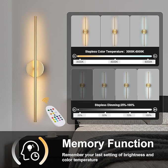 - Sconces With Remote Control: The wall lamp comes with a remote control, offering a range of features such as adjustable brightness (20-100%), customizable color temperature (warm white/neutral white/daylight), RGB color options, timer settings (30/60/120 minutes), and a convenient one-touch night light function. Battery lighting time up to 20-50 hours (no wiring installation). Rechargeable, USB charging cable (Type-C) included