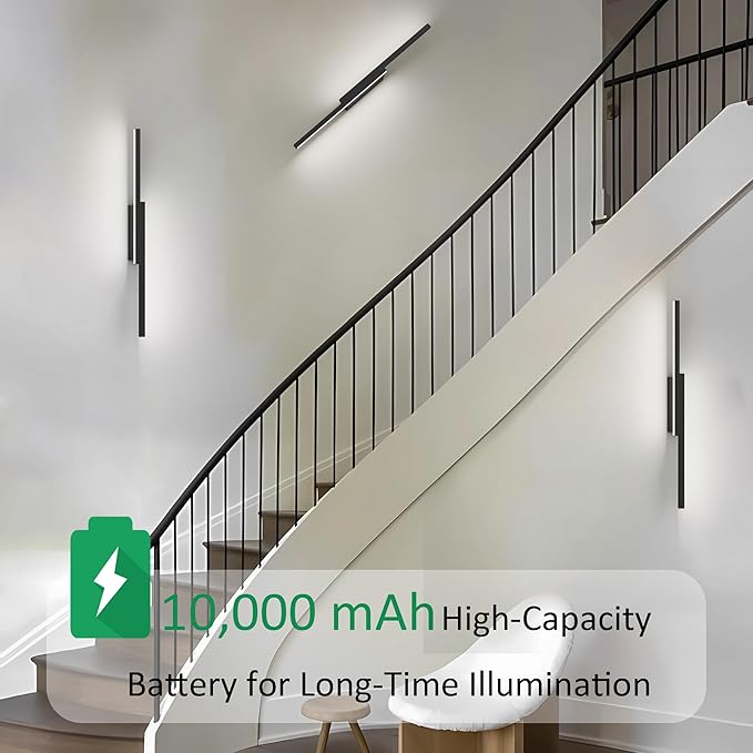- Battery Operated Wall Lights: This wireless wall light built-in 10,000mAh battery provides long-lasting illumination. When the light is fully charged, it can work for up to 16 hours or more. (It depends on which brightness is used.) Charging time is 4-4.5 hours. The wireless design makes your space more neat and clean.Charging cable included. Please use the supplied charging cable for charging. (5V,1A~2A)