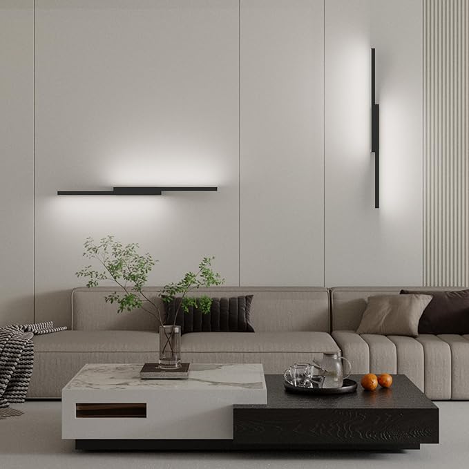 Aipsun 23.6inch Black Battery Operated Wall Sconce Set of 2, Rechargeable Wall Sconce Lighting Dimmable Wireless Wall Lights for Living Room,Bedroom